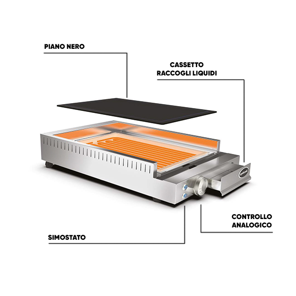Diese Frittierplatte eignet sich perfekt für Sandwichläden, Burgerläden, Restaurants, Strandkioske und Imbisswagen und kombiniert fortschrittliche Technologie mit hochwertigsten Materialien, um bei jeder Zubereitung hervorragende Ergebnisse zu gewährleisten.
