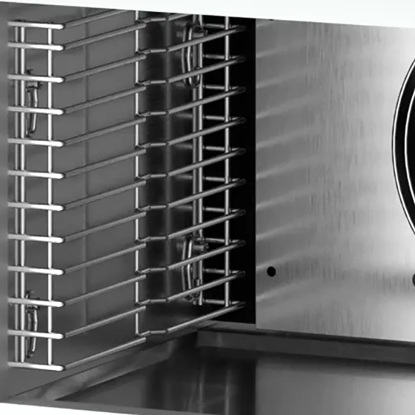 Die Drahtführungen und Roste aus Edelstahl bieten Platz für bis zu 5 GN 1/1-Schalen (700 mm tief) und sind daher äußerst vielseitig.